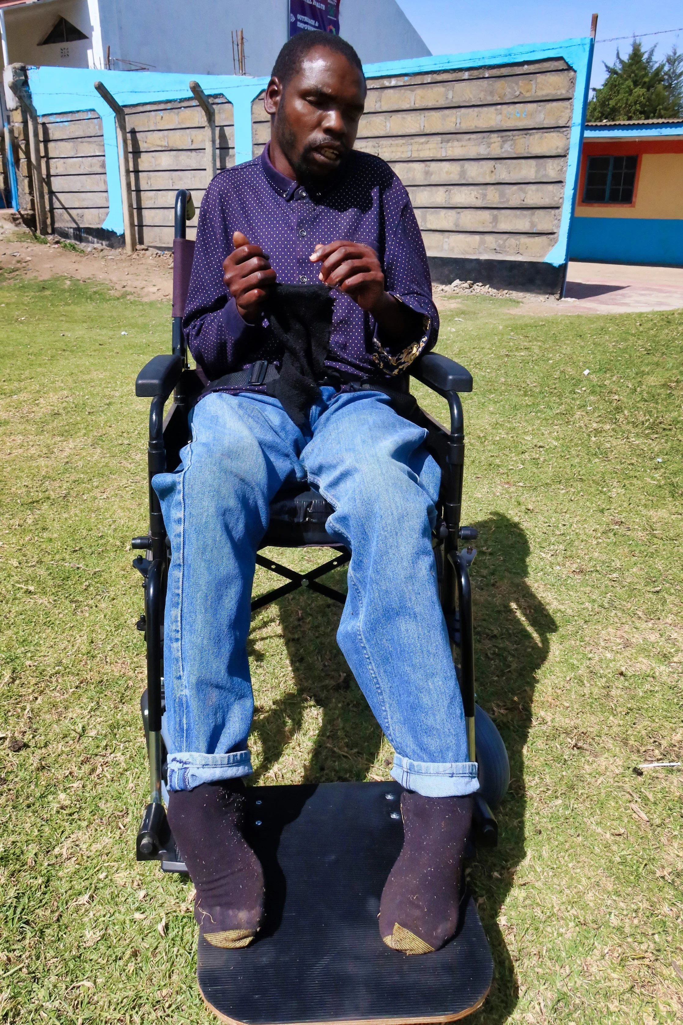 Samuel, 33, from Kenya - carried by his mother since childhood. - has recently received his wheelchair.