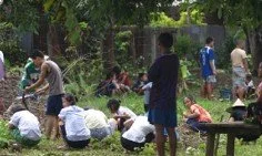 For school use only, there are fruit trees on the campus yielding guava, coconuts, rose-apple, pomelo, bananas, etc, and pigs are reared throughout the year.