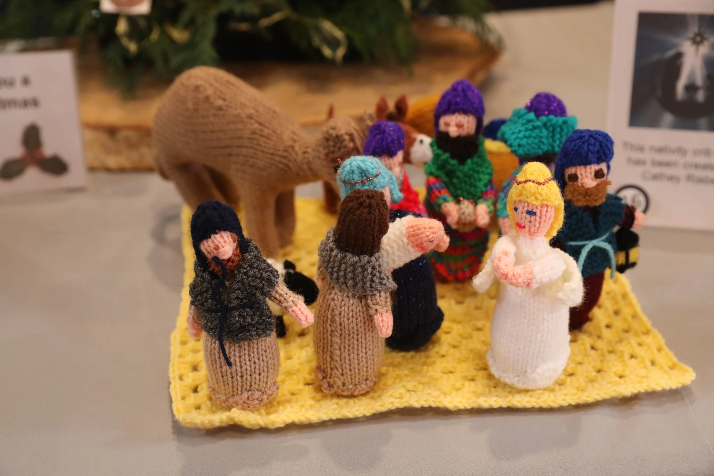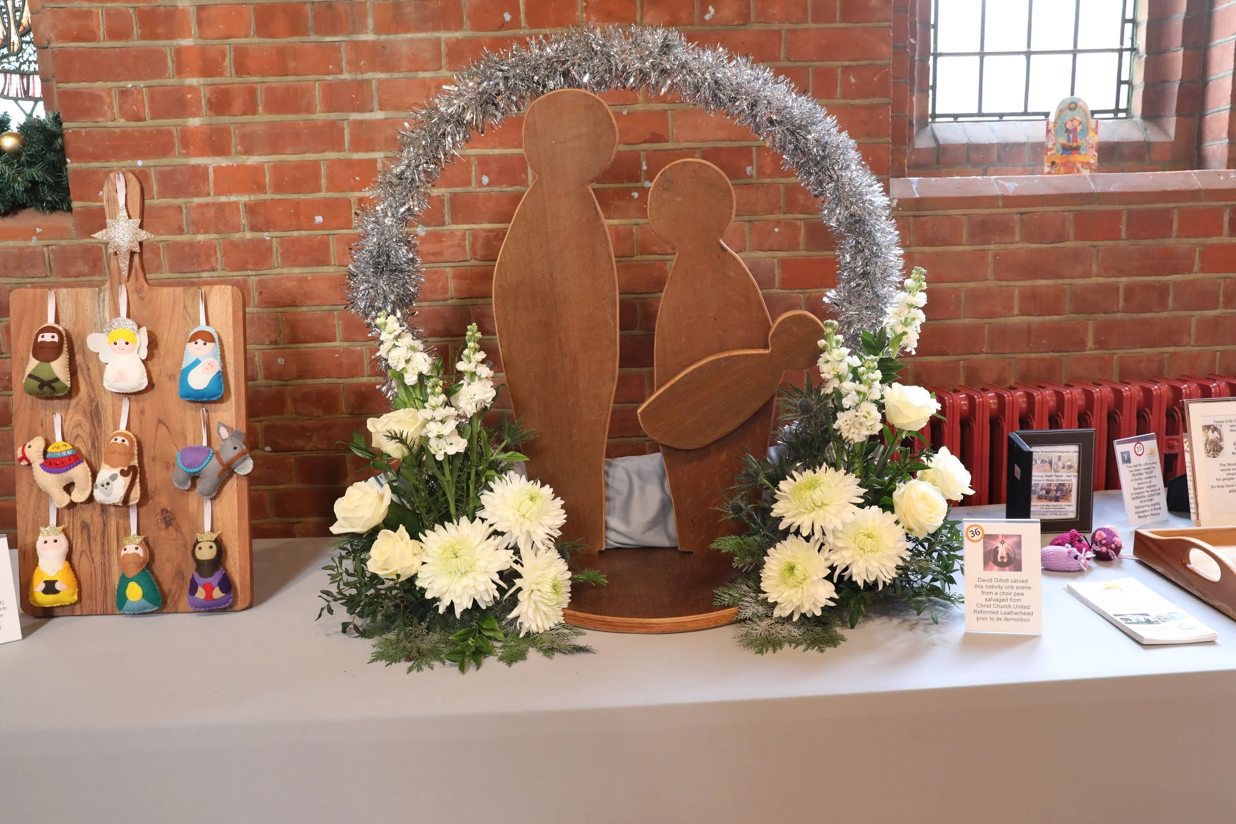 The displays featured 42 table‑top cribs, alongside quilts, textiles, and a striking life‑size silhouette of the nativity scene, designed by Hilary Perona‑Wright and crafted by Richard Bowden.
