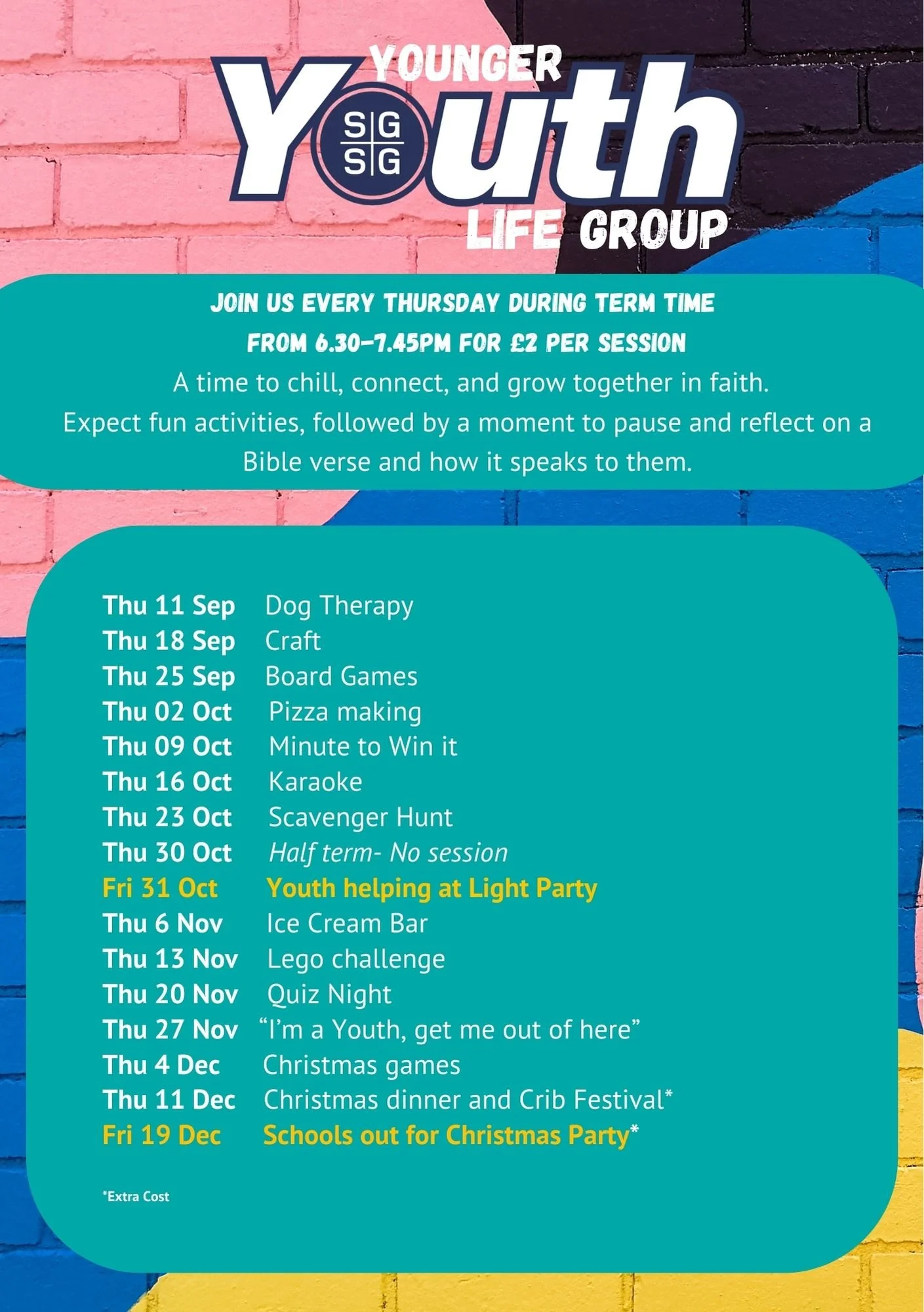 Younger Youth session is for those in school years 6 – 9 and will be happening after the first block of worship in the Youth Room upstairs at St. George’s. This will be a time of games, teaching, prayer and worship.